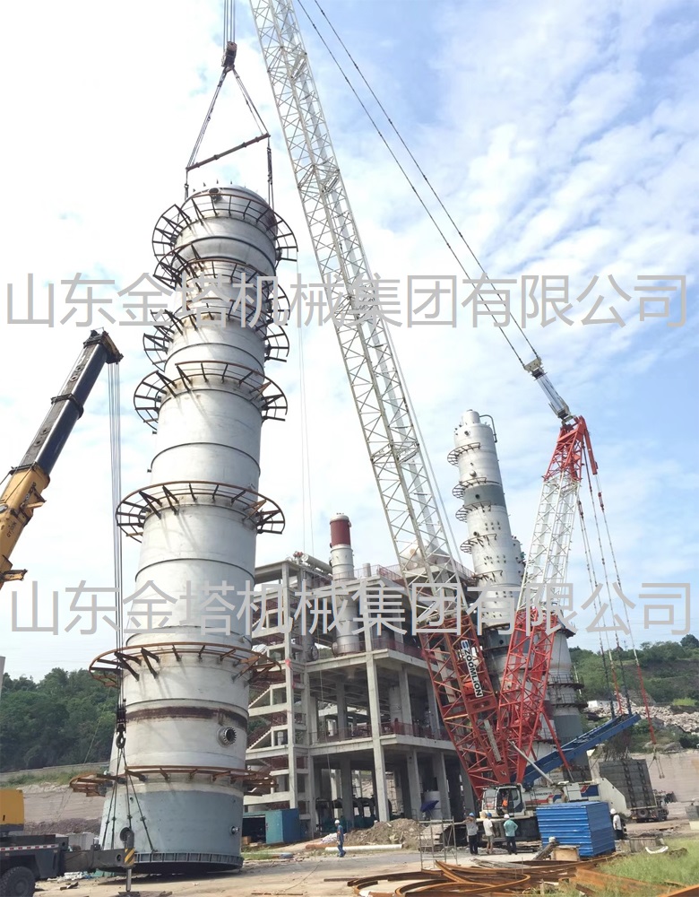 Early in 2018, our company has undertaken a single set of the largest domestic and most advanced technology, with an annual output of 600,000 tons of 27.5% hydrogen peroxide equipment. The employees of our company overcome the difficulties of large diameter, difficult construction, poor site conditions, etc., and the production process is exquisite. The three sets of key equipments such as drying column, extraction column and oxidation column of the unit are hoisted in one place.